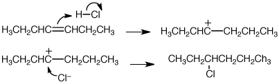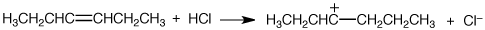 どちらの炭素にプロトン付加しても同じカチオンになる |