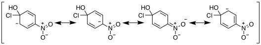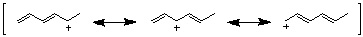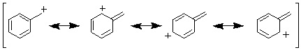 19-15 (例)メトキシベンゼンのカチオン中間体は置換基酸素にカチオンが分布する共鳴極限構造式がかけ、ベンゼンより共鳴構造が多く安定化するので、律速段階となる活性化エネルギーも低下し反応速度が大きくなる。 |