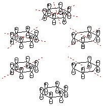 08-10 非芳香族。環の内側に向いているC-H結合の水素原子が立体障害となって平面構造とならない。 |